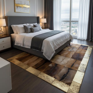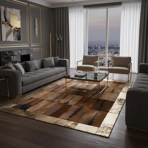 Patchwork Kahverengi Oğlak Kürkü Salon Halısı