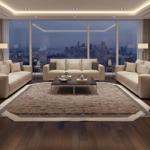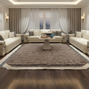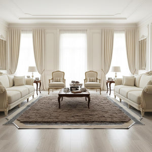 Kahve Tonlu Toscana Kürk Salon Halısı – Zarif Bordürlü Modern Tasarım