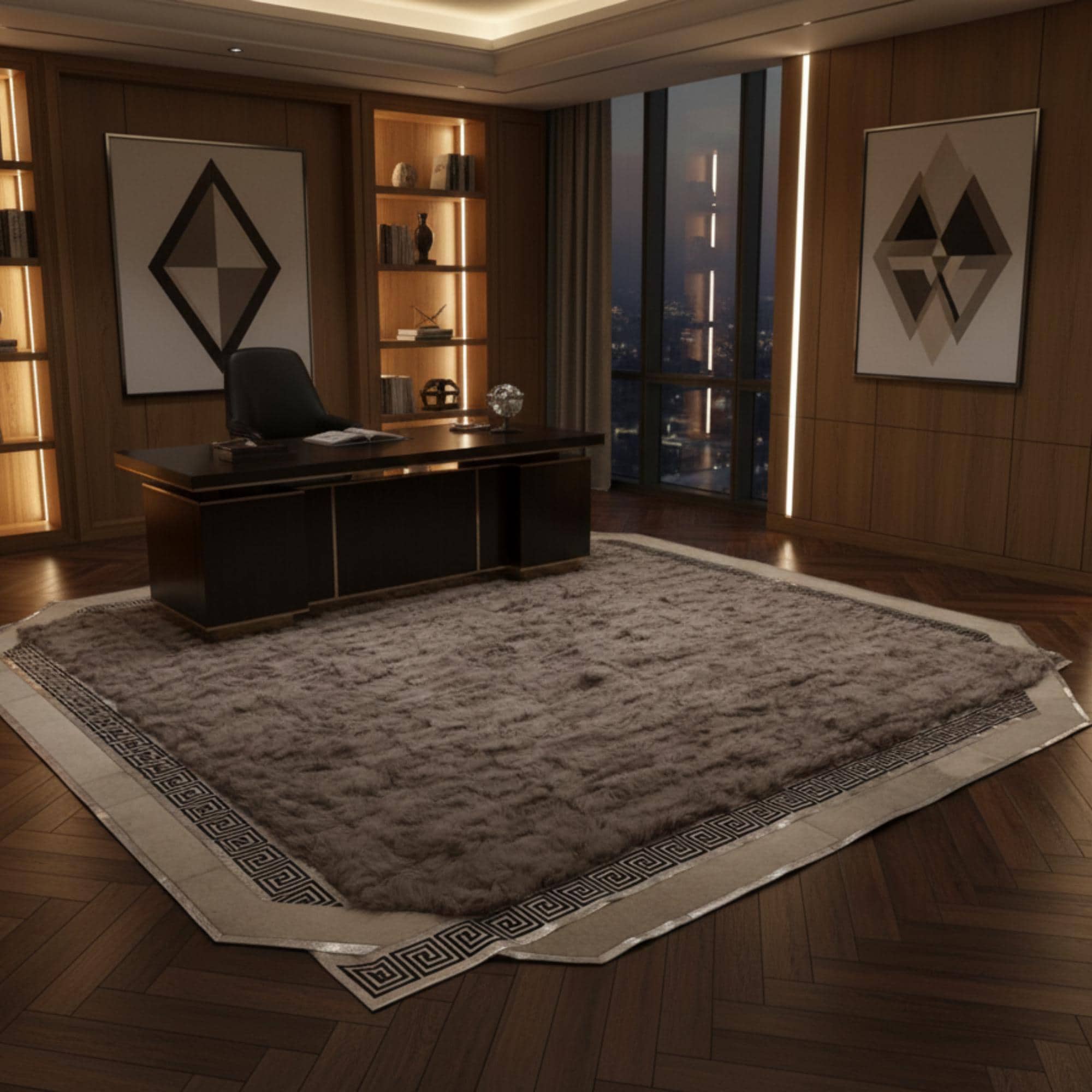 Doğal Toscana kürkünden üretilen bu salon halısı, yumuşak kahve tonları ve açık renkli zarif bordür detayıyla yaşam alanlarına sıcak ve dengeli bir şıklık kazandırır. Orta koyulukta kahve rengin doğal ve sakin duruşu, açık çerçevenin aydınlatıcı etkisiyle birleşerek mekânda huzurlu ve sofistike bir atmosfer oluşturur. Toscana kürkünün dolgun ve ipeksi dokusu, halıya konforlu bir his kazandırırken modern ve klasik dekorasyon stilleriyle uyumlu bir görünüm sunar.