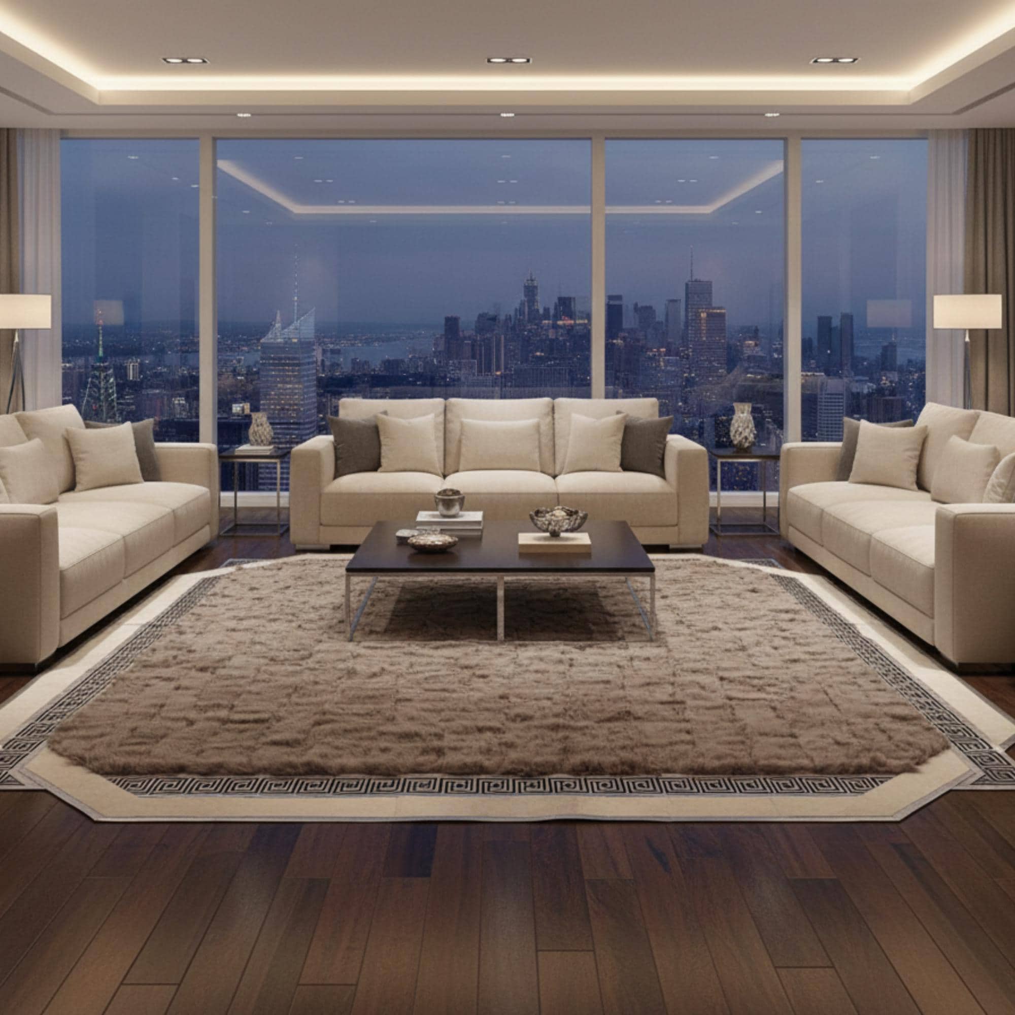 Alt yüzeyinde kullanılan kaymaz taban sayesinde halı zeminde sabit durur ve günlük kullanımda güvenli bir deneyim sağlar. El yapımı olarak üretilen bu Toscana kürk halı, salon ve geniş oturma alanlarında dekorasyonu yormadan tamamlayan zarif bir odak noktası olarak öne çıkar. İhtiyaca göre özel ölçü seçenekleriyle üretim yapılabilmektedir.