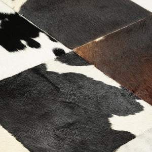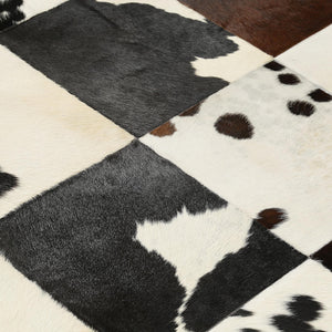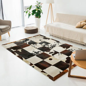 Kare Desenli Beyaz Siyah Dana Derisi Halı – El Dokuma Hakiki Deri Giriş Halısı