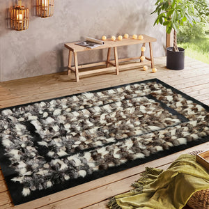 Siyah Kenarlı Kahverengi Beyaz Tilki Kürkü Halı yumuşak dokusu ve dikkat çekici renk geçişleriyle yaşam alanlarınıza lüks bir dokunuş katar. Özenle seçilmiş gerçek tilki kürkünden üretilmiştir.