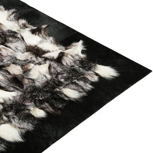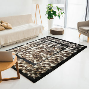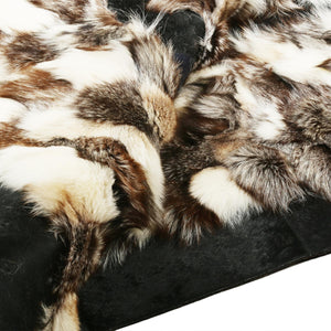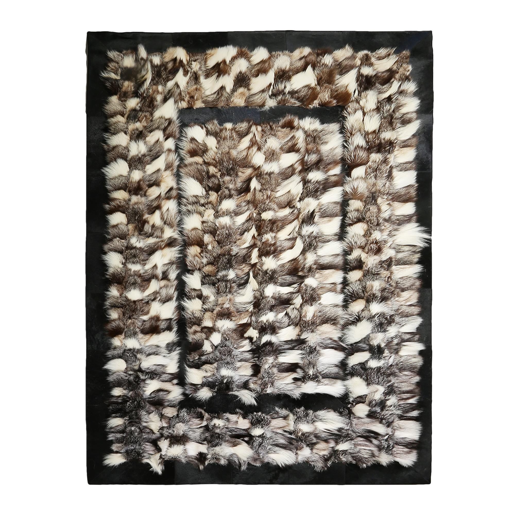 Tilki Kürkü Halı Kahverengi Beyaz Siyah Kenarlı – El Yapımı Doğal Kürk Salon Halısı