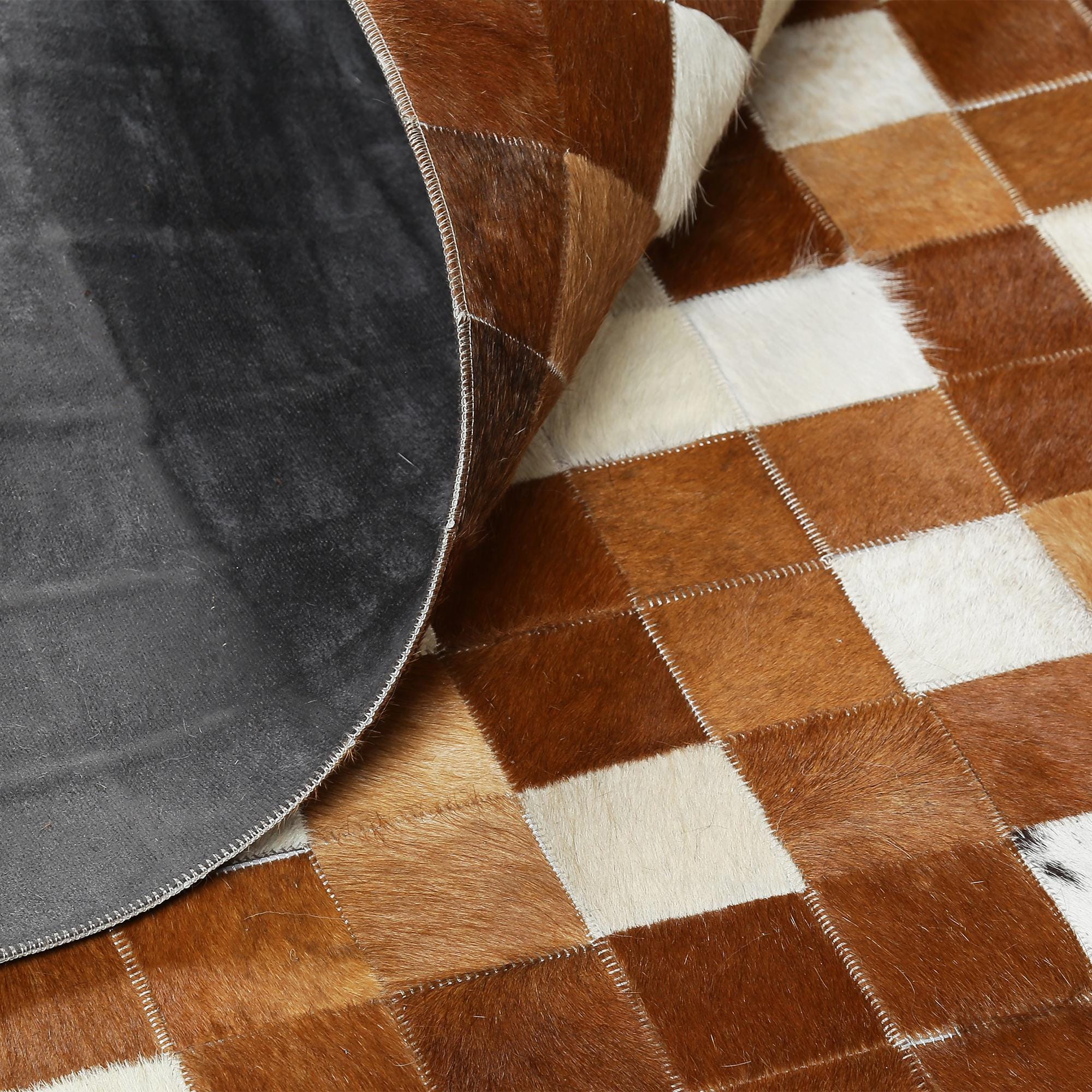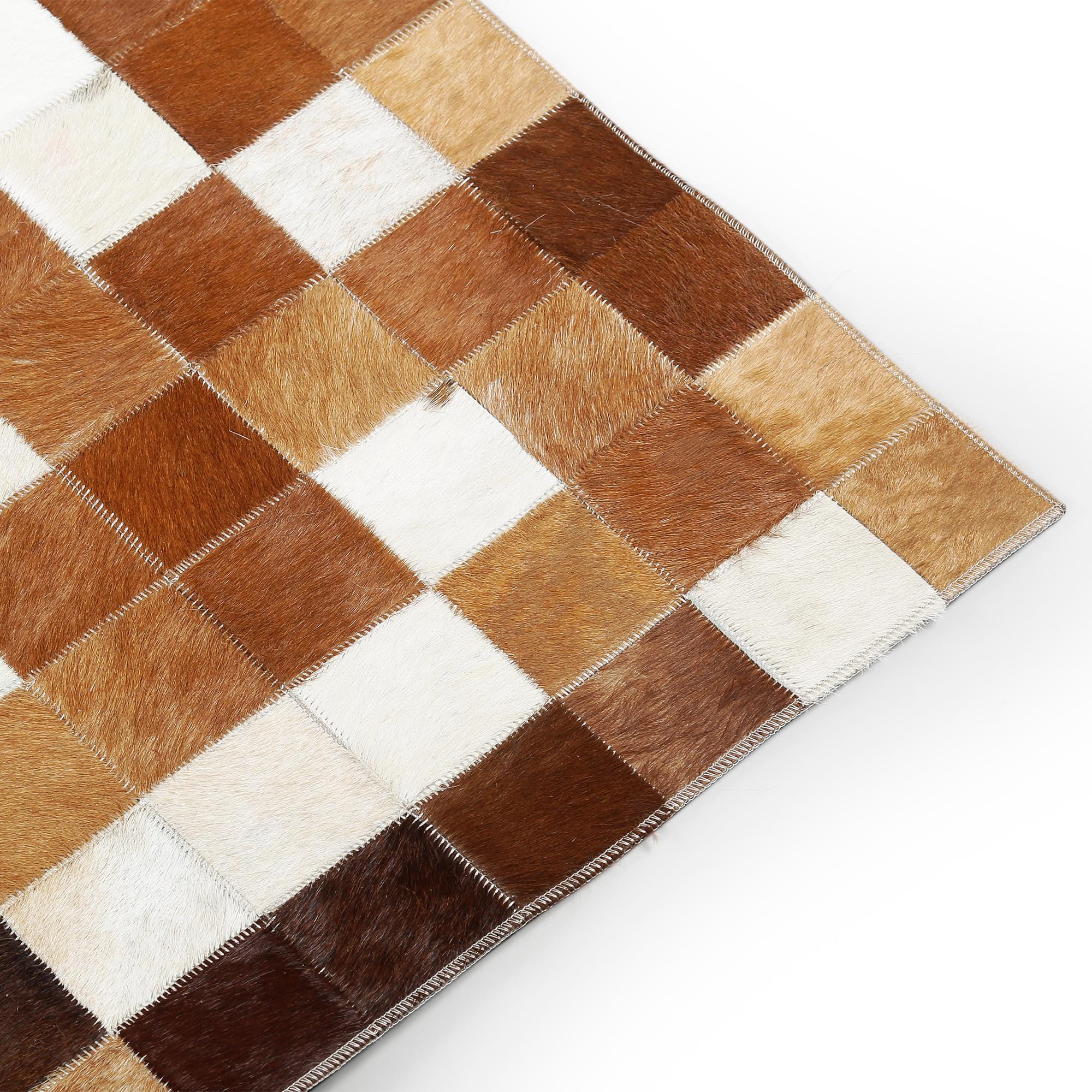 Kahverengi Beyaz Doğal Dana Derisi Patchwork Halı – El Dokuma Hakiki Deri Dekoratif Mutfak Halısı