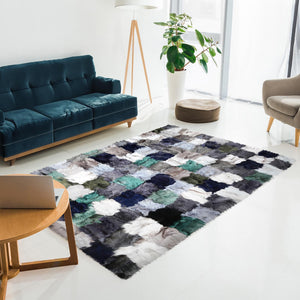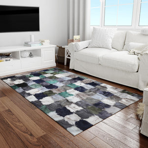 ri ve Yeşil Tonlarında Kare Desenli Gerçek Toskana Derisi Lüks Salon Halısı