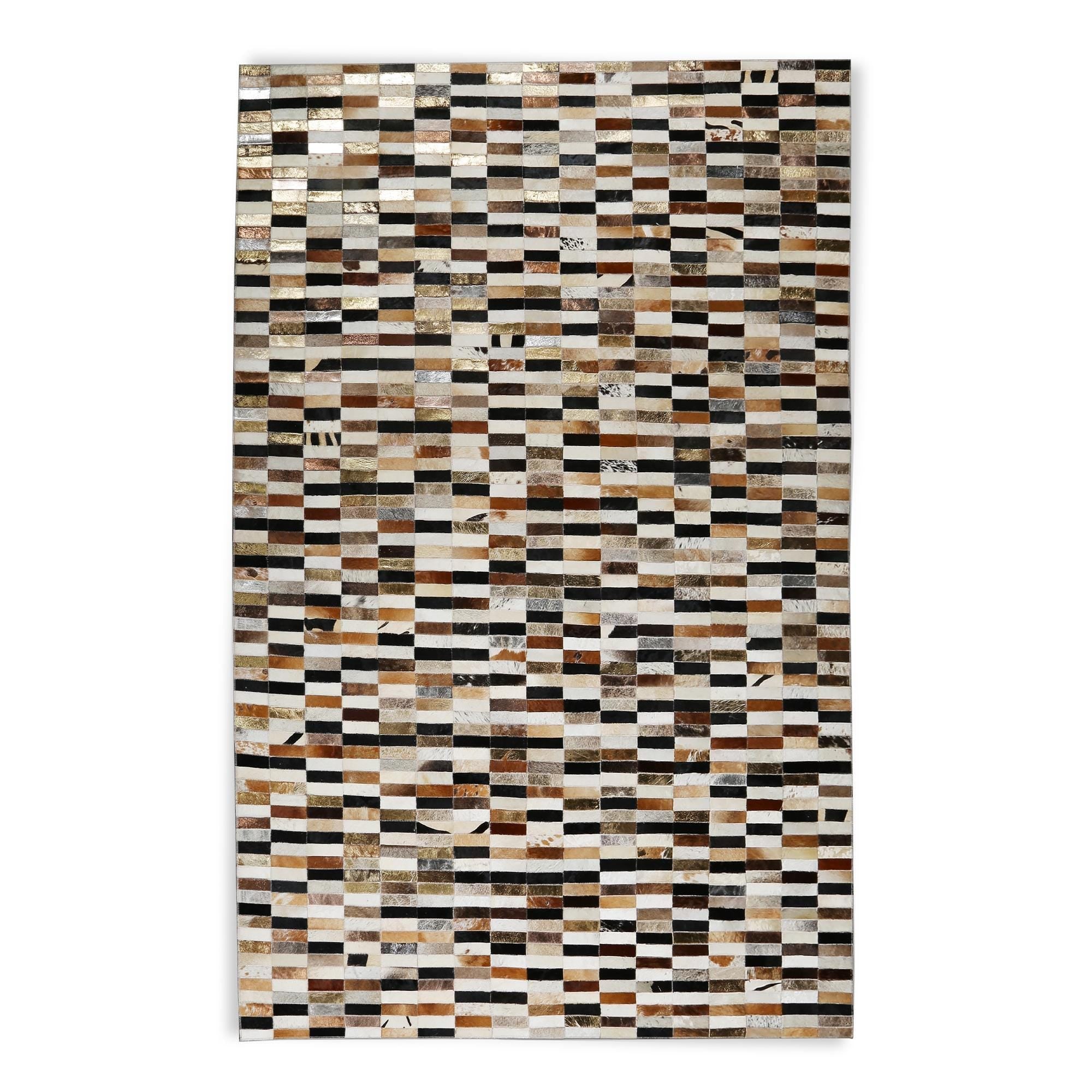 Altın tonlara sahip bu dana derisi halı, doğal dokusu ve şık görünümüyle dikkat çeker.