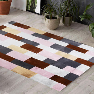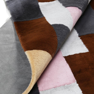 Renkli Geometrik Desenli Yumuşak Peluş Lüks Salon Halısı