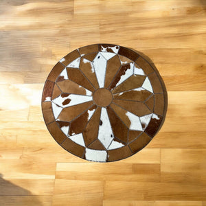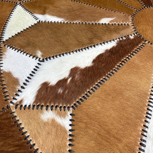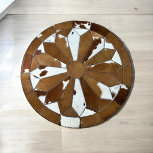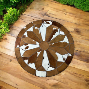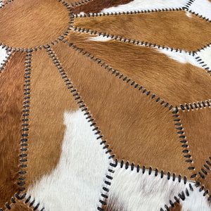 Kahverengi ve Beyaz Desenli Yuvarlak Patchwork Gerçek Dana Derisi Halı