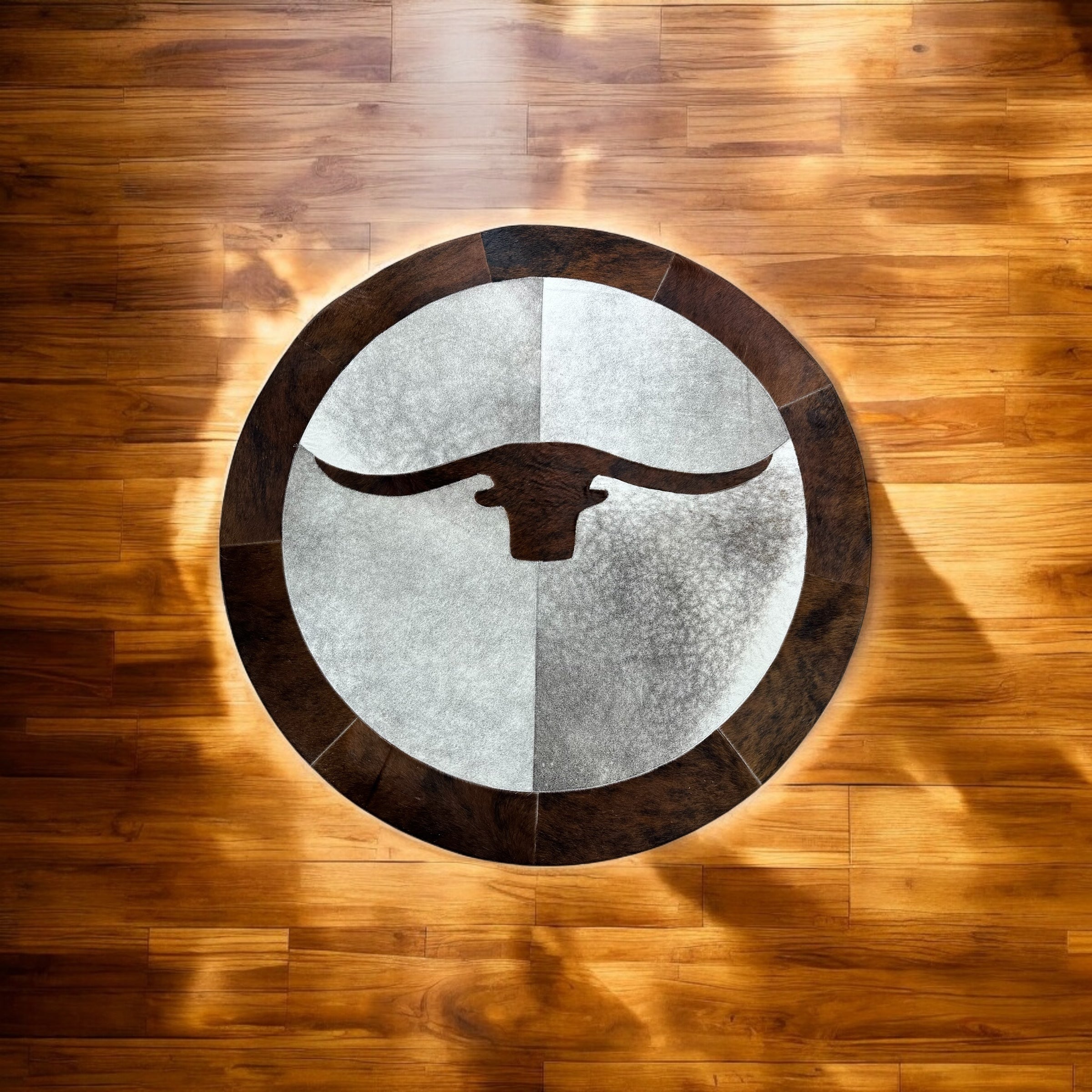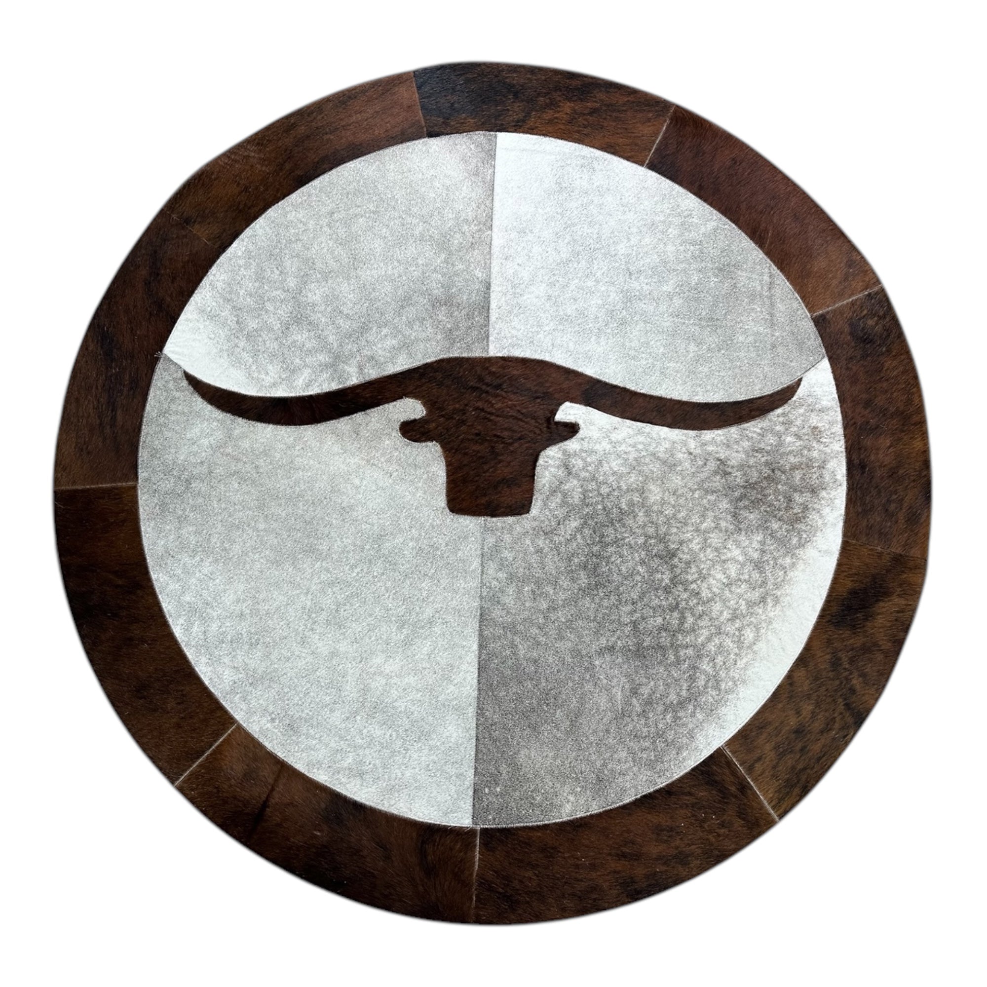 Boğa Motifli Yuvarlak Dana Derisi Halı