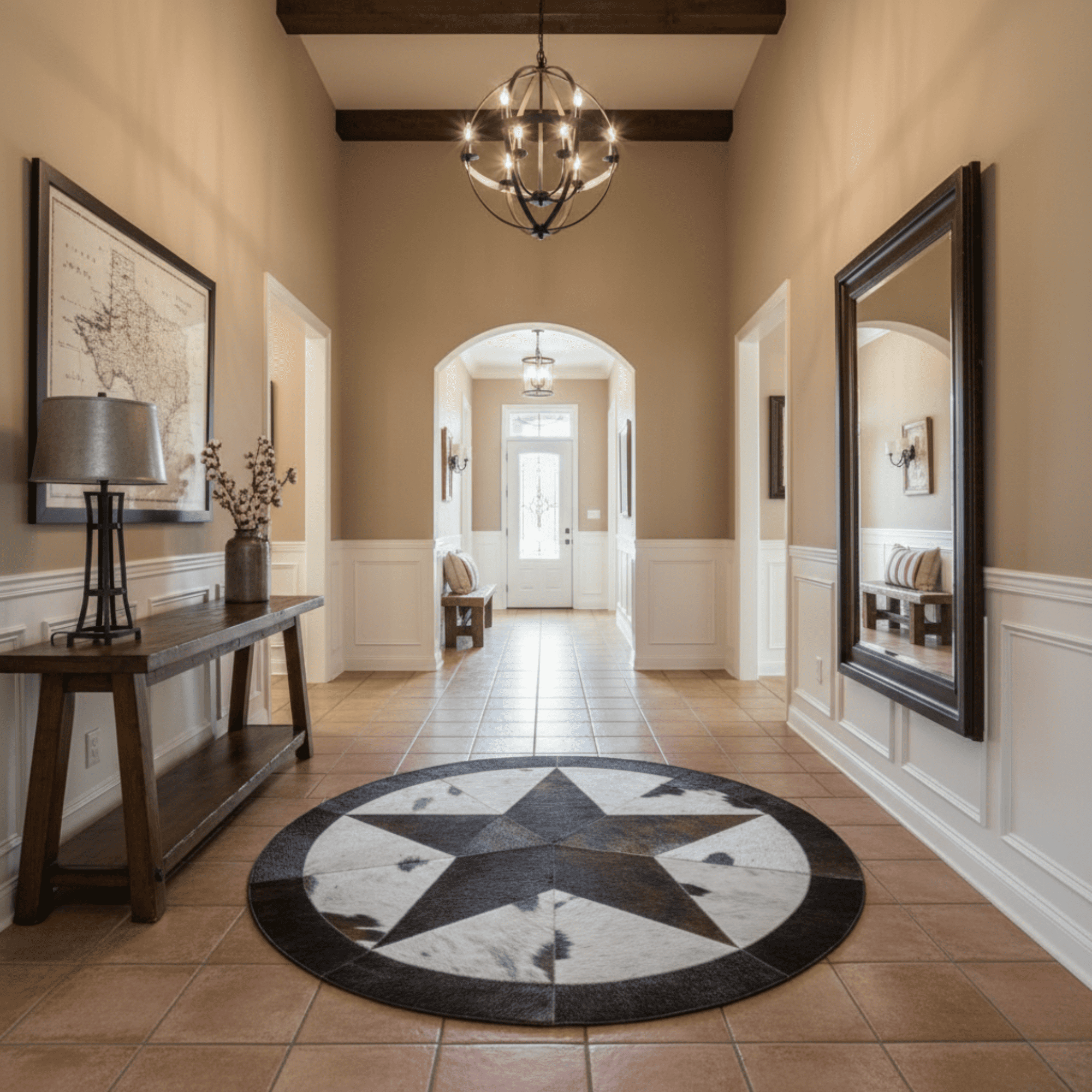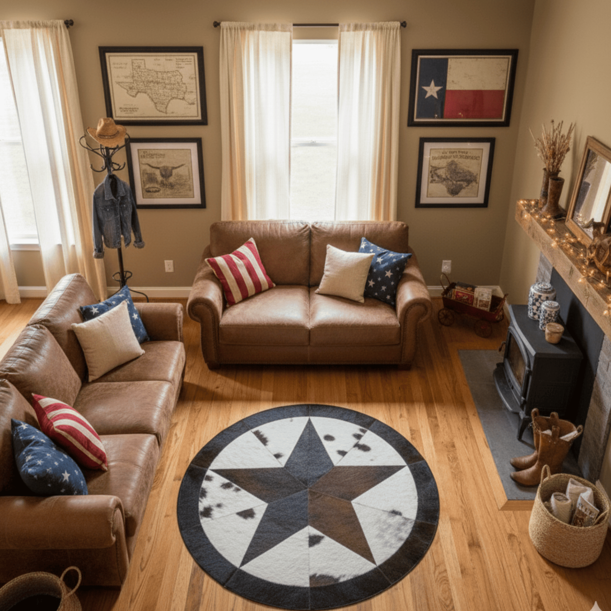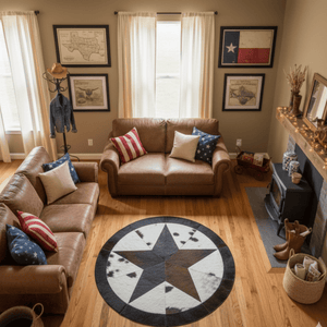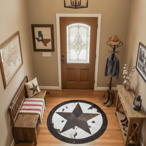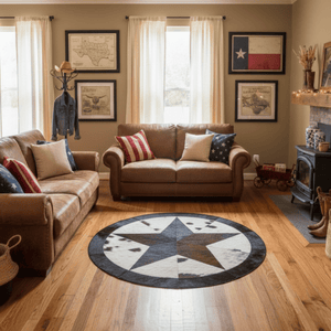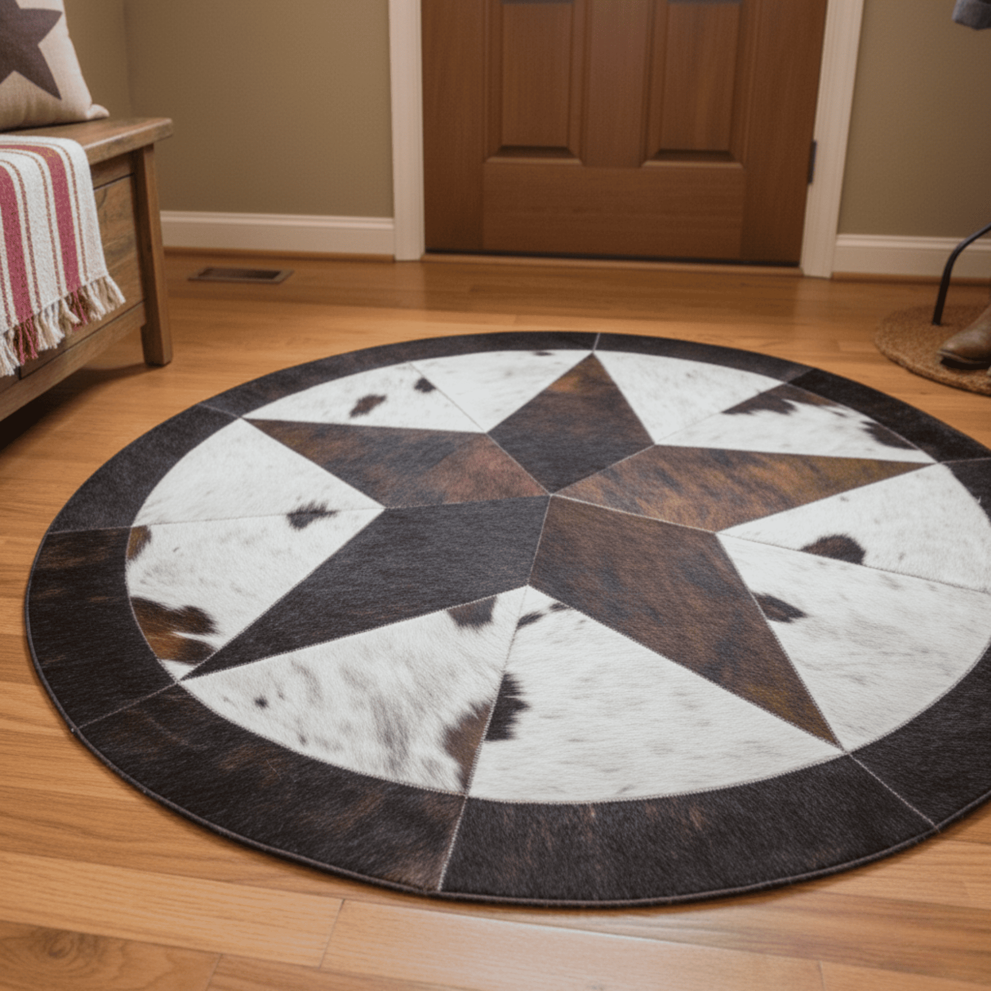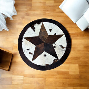 Yıldız Motifli Yuvarlak Dana Derisi Halı - Şık Ortam Halısı