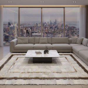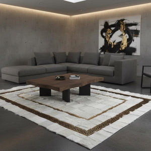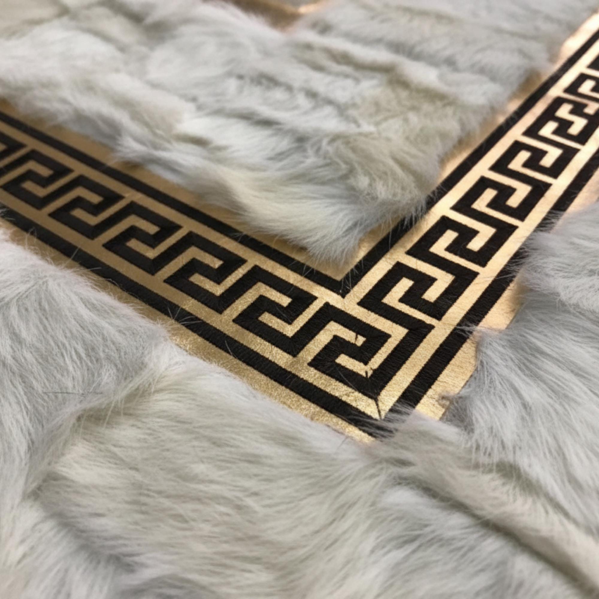 Altın Bordürlü Beyaz Toscana Kürk Salon Halısı – Zarif ve Aydınlık Tasarım