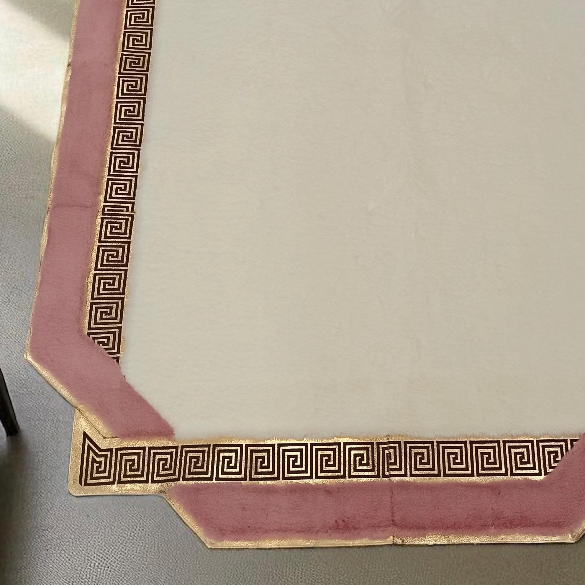 Pembe ve Altın Bordürlü Krem Peluş Halı - Yumuşak Yatak Odası Halısı