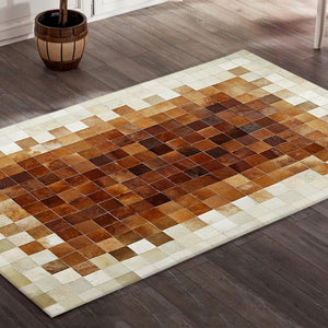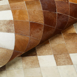 Kahverengi Dana Derisi Patchwork Halı - Şık Doğal Dana Derisi