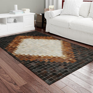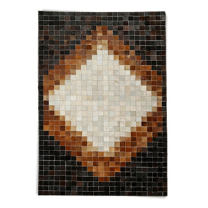 Siyah & kahverengi tonlara sahip bu dana derisi halı, doğal dokusu ve şık görünümüyle dikkat çeker.