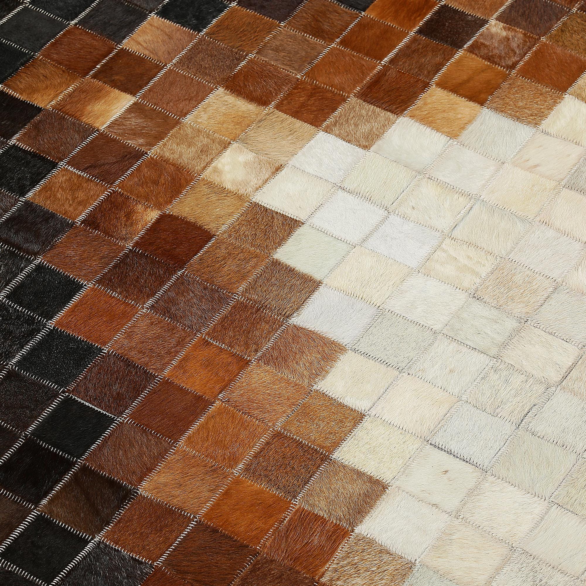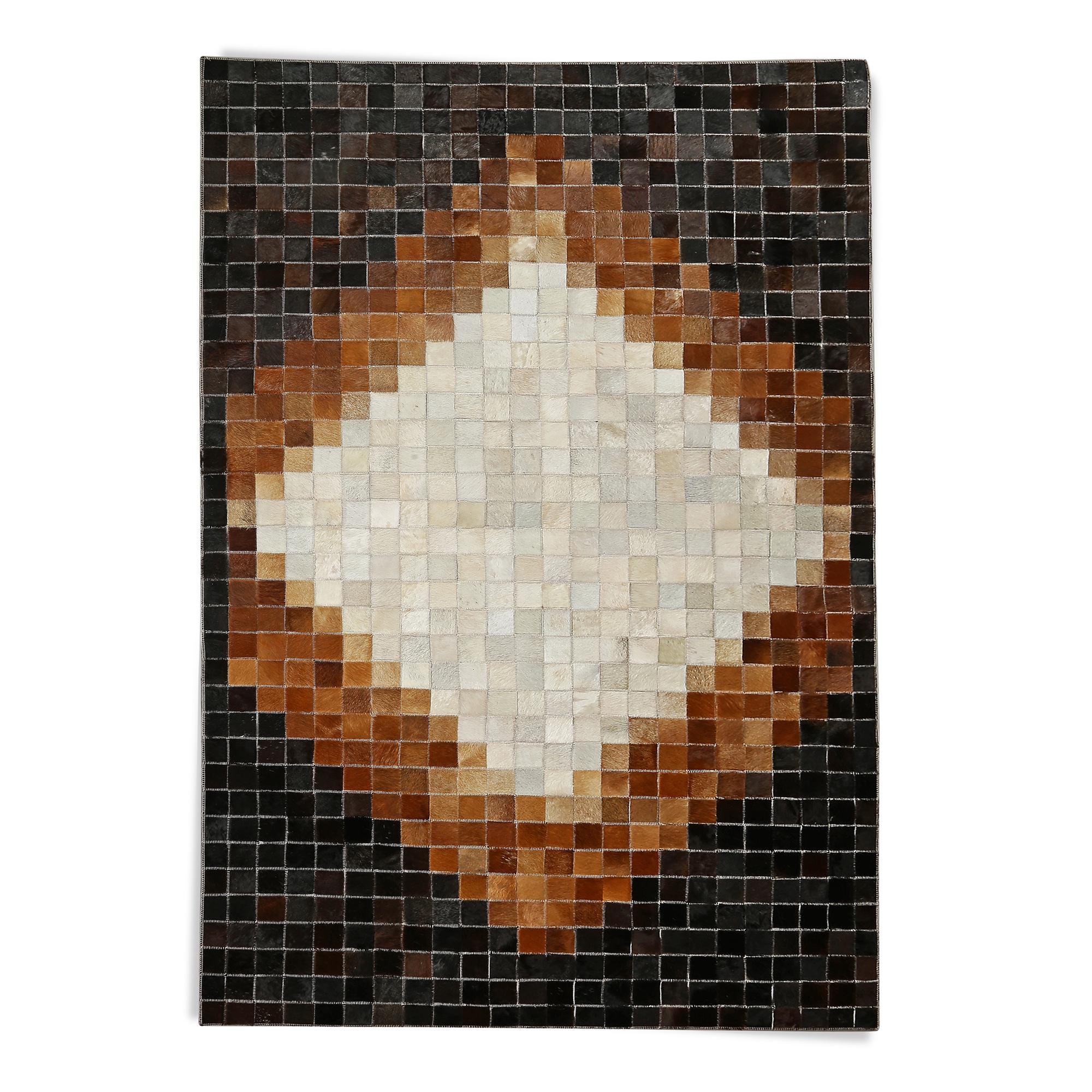 Hakiki Deriden El Yapımı Kahverengi Siyah Patchwork Dana Halısı – Şık Salon ve Giriş Halısı