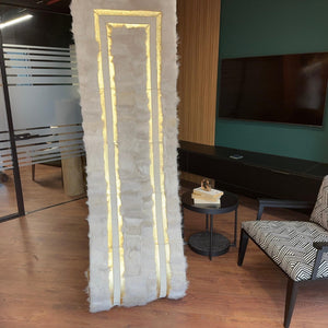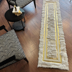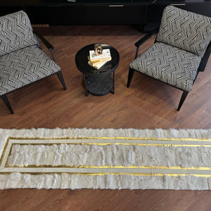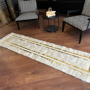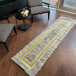 Krem ve Altın Renkli Çerçeveli Gerçek Toskana Derisi Lüks Runner Halı