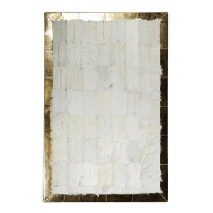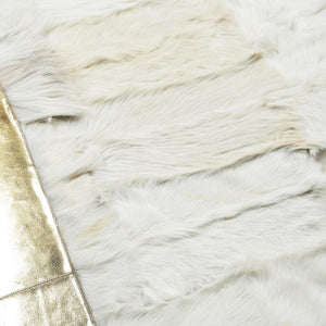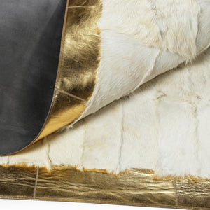 Beyaz Patchwork Oğlak Derisi Halı – Altın Bordürlü El Yapımı Doğal Deri Halı, Lüks Dekoratif Salon Halısı