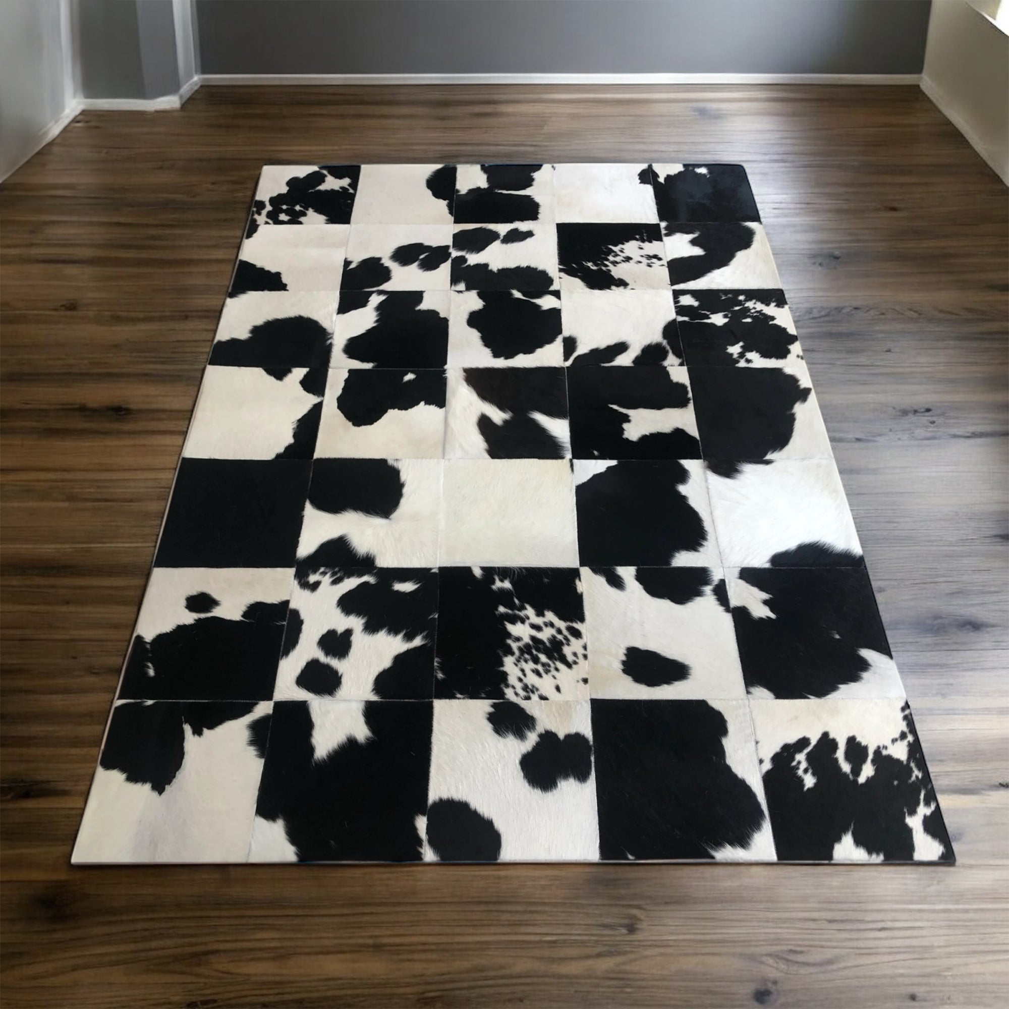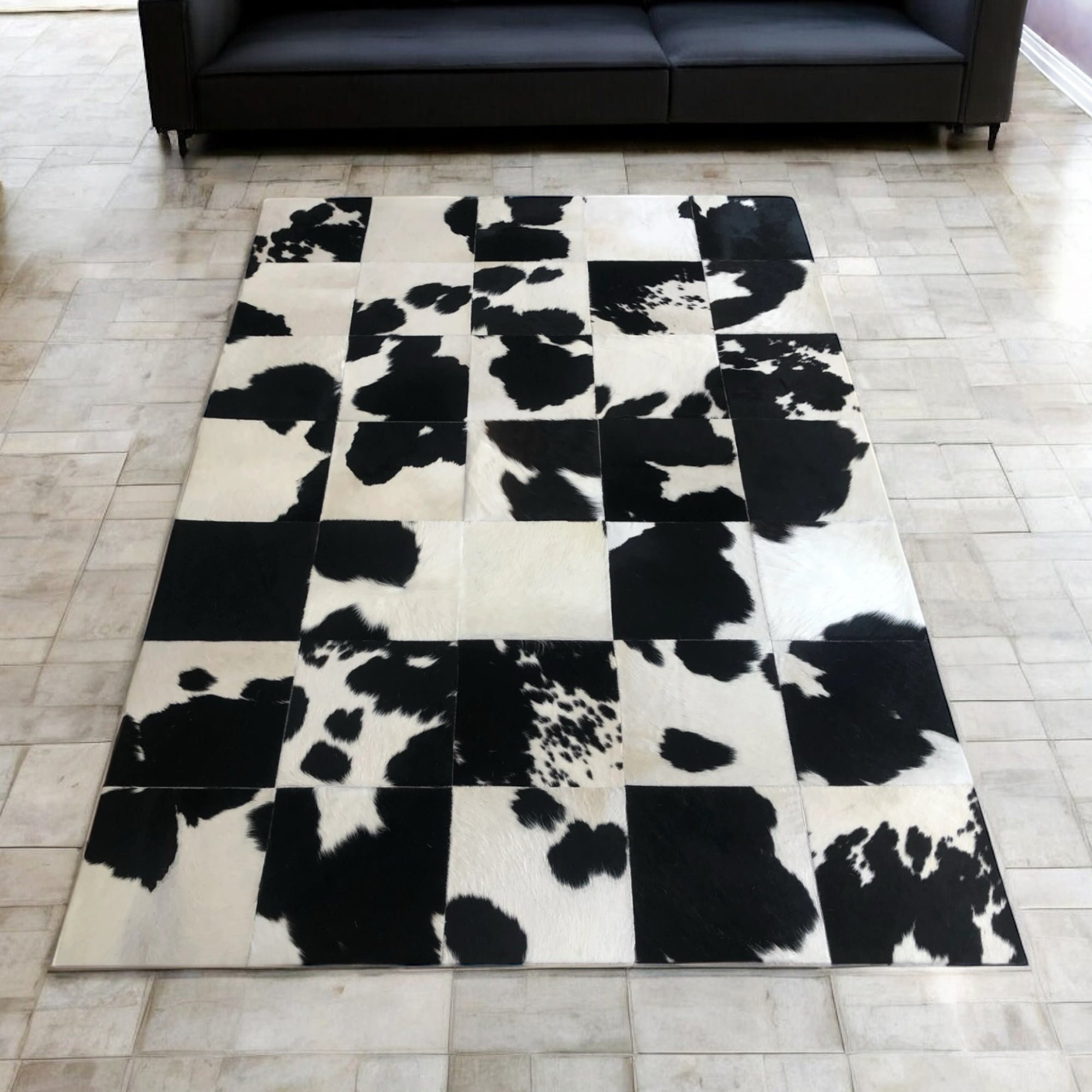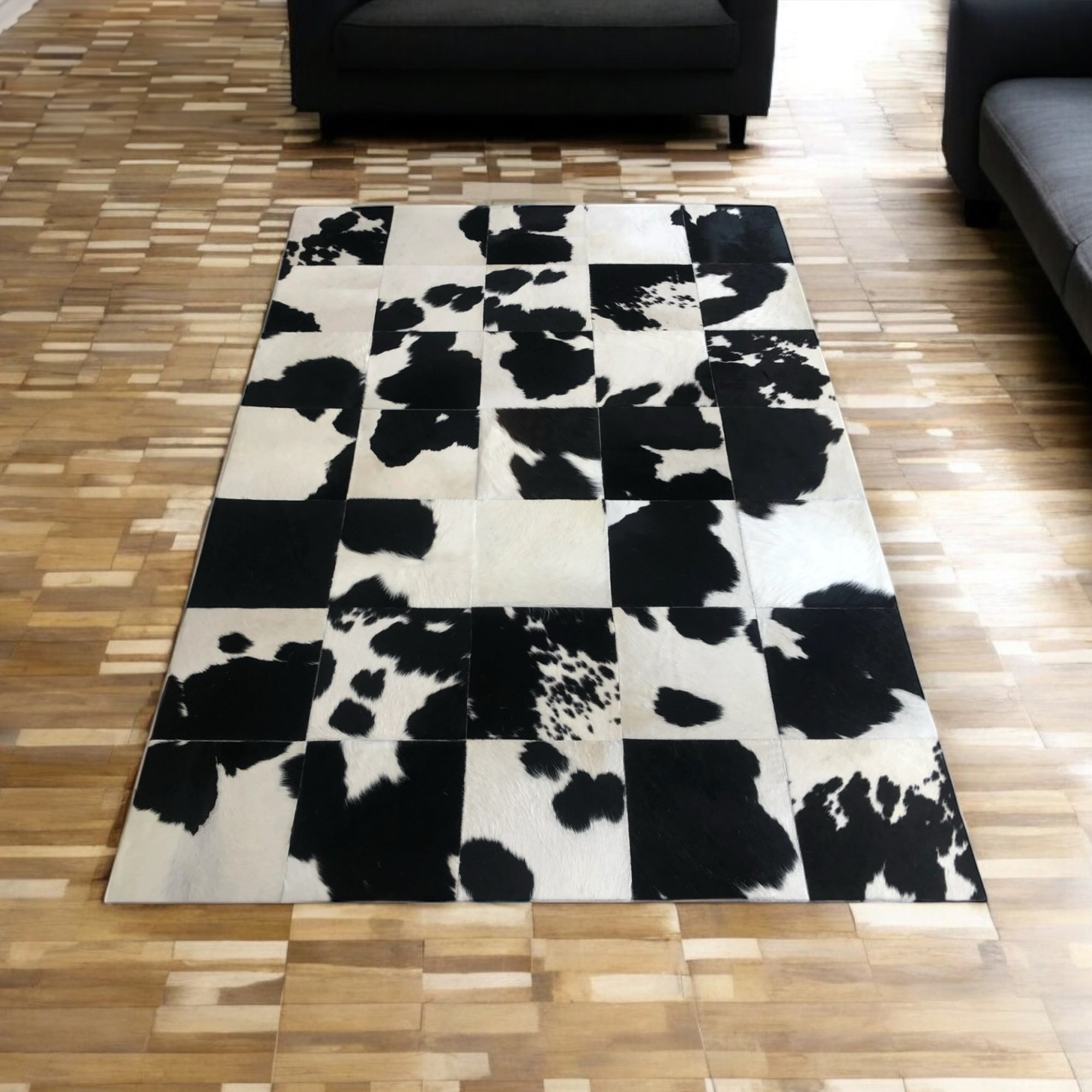 Koyu Kahverengi Dalmaçya Desenli Dana Derisi Halı – El Yapımı Gerçek Deri Koridor Halısı