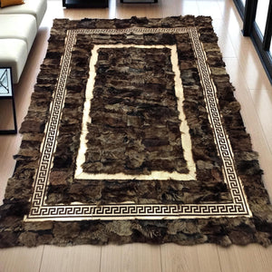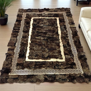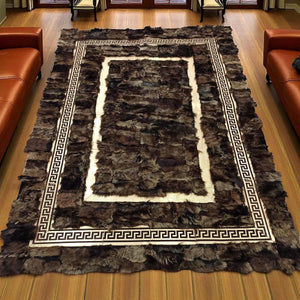 Koyu Kahverengi Toskana Kürk Halı – El Yapımı Özgün Desenli Şık Salon Halısı