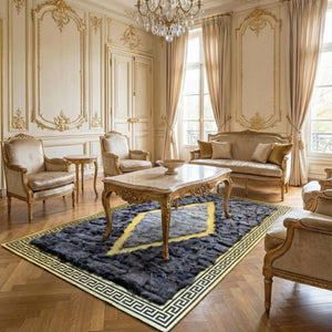 Doğal Toscana kürkünden üretilen bu gri salon halısı, altın bordür detayıyla klasik ve lüks dekorasyon anlayışını tamamlamak üzere tasarlanmıştır. Gri tonlarının asil duruşu ile altın çerçevenin zarif birleşimi, mekânda dengeli ve prestijli bir atmosfer oluştururken Toscana kürkünün yumuşak ve ipeksi dokusu halıya konforlu bir his kazandırır.