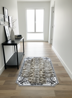 Gri Tilki Kürkü Halı – Siyah ve Beyaz Çerçeveli, Yumuşak ve El İşçiliği Doku, Kaymaz Taban – Özel Ölçü Seçenekleri