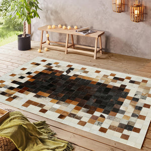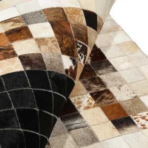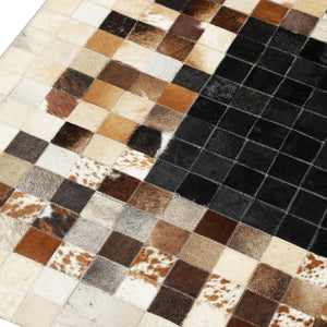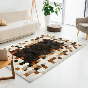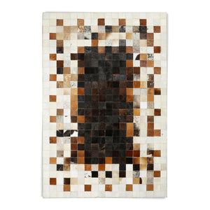 Kare Desenli Kahverengi ve Krem Dana Derisi Halı