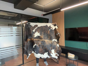 Gerçek Dana Derisi Halı, Kahverengi Benekli 150x200 cm, doğal dana derisinden üretilmiş yüksek kaliteli bir halıdır. Şık görünümü ve benzersiz deseniyle dikkat çeker.