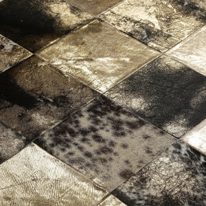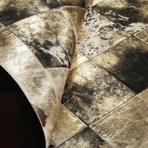 Altın Kahverengi Dana Derisi Patchwork Halı – El Yapımı Hakiki Deri Lüks Ev Dekorasyonu Halısı