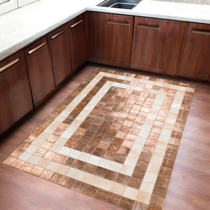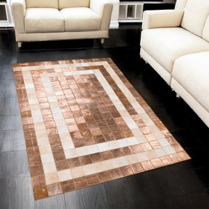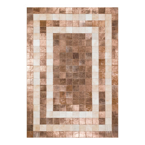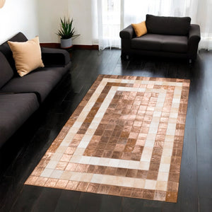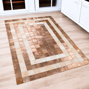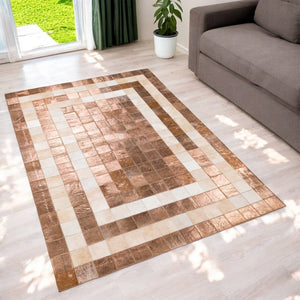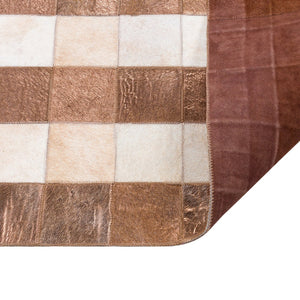 Bronz Renkli Dana Derisi Patchwork Halı – El Dokuma Hakiki Deri Lüks Dekoratif Salon Halısı