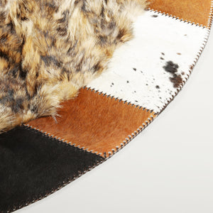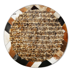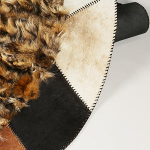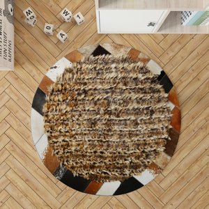Kahverengi ve Krem Renkli Desenli Yuvarlak Patchwork Gerçek Toskana Derisi Halı