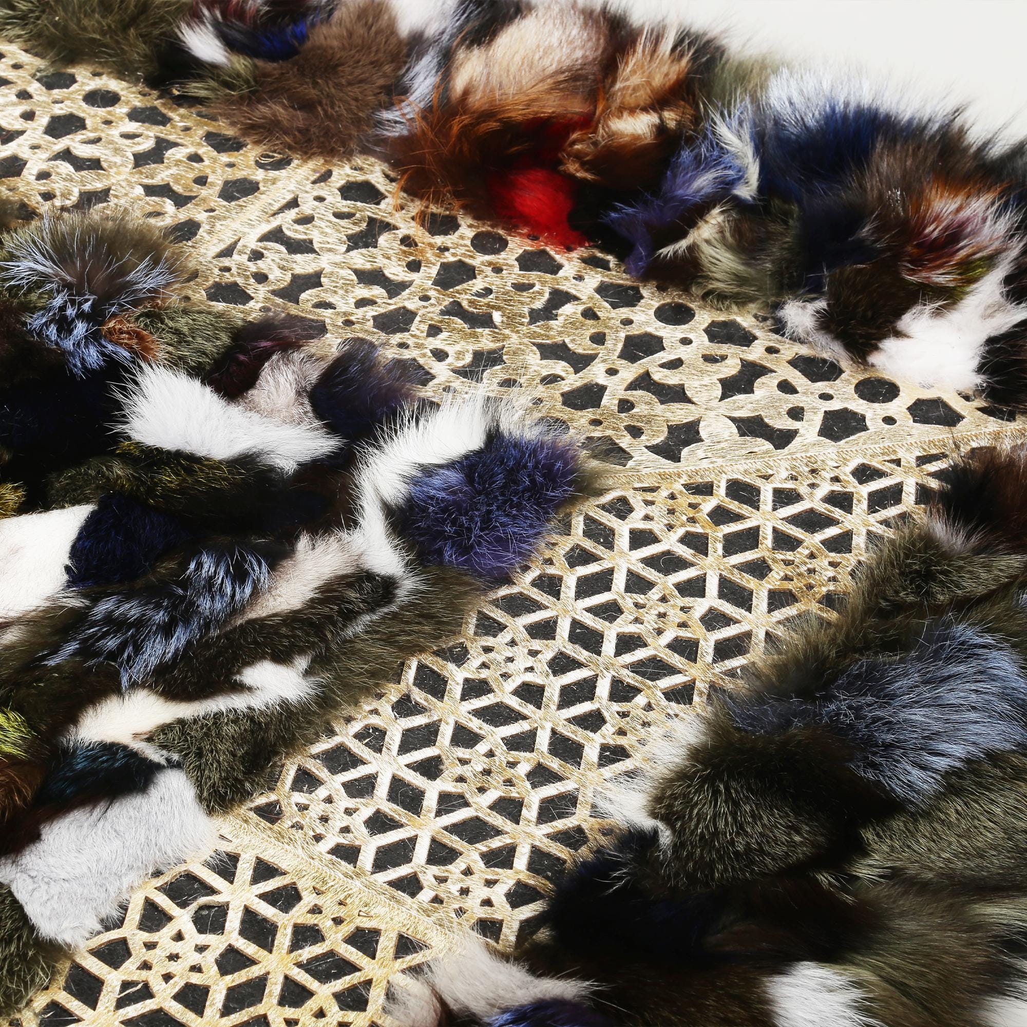 Dantel Kenarlı Renkli Tilki Kürkü Halı yumuşak dokusu ve dikkat çekici renk geçişleriyle yaşam alanlarınıza lüks bir dokunuş katar. Özenle seçilmiş gerçek tilki kürkünden üretilmiştir.