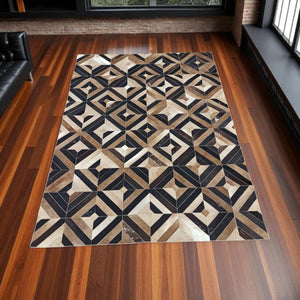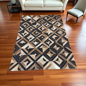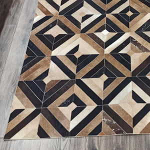 Kahverengi Siyah Patchwork Halı – Doğal Dana Derisi El Yapımı Büyük Halı
