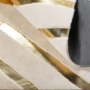 Krem ve Altın Renkli Modern Çizgili Desenli Yumuşak Peluş Lüks Salon Halısı