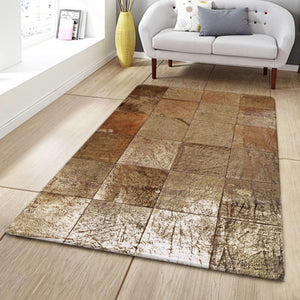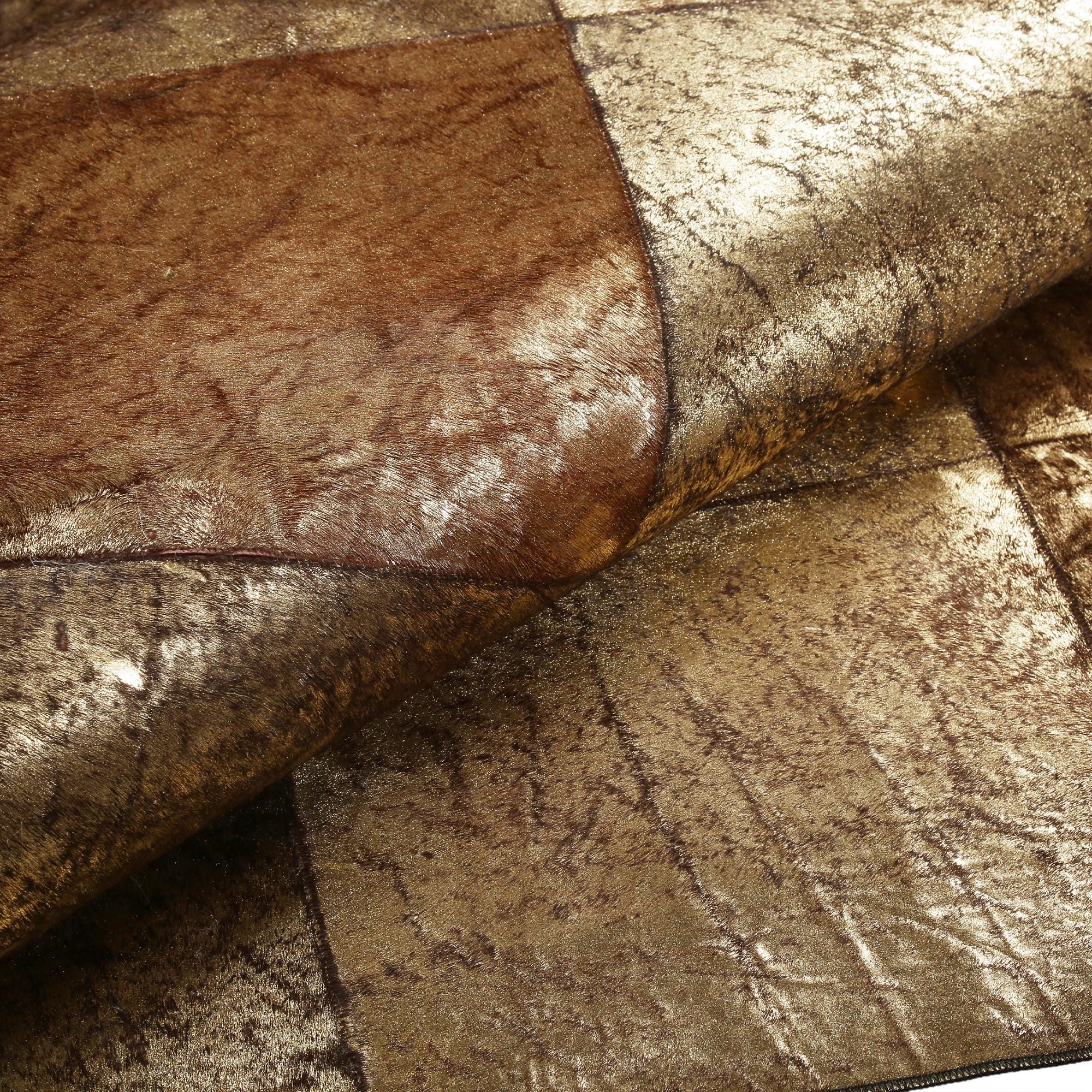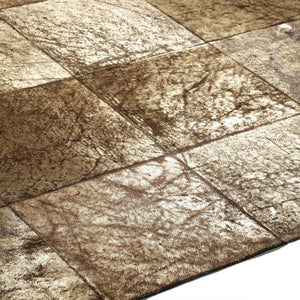 Altın ve Açık Kahverengi Dana Derisi Patchwork Halı