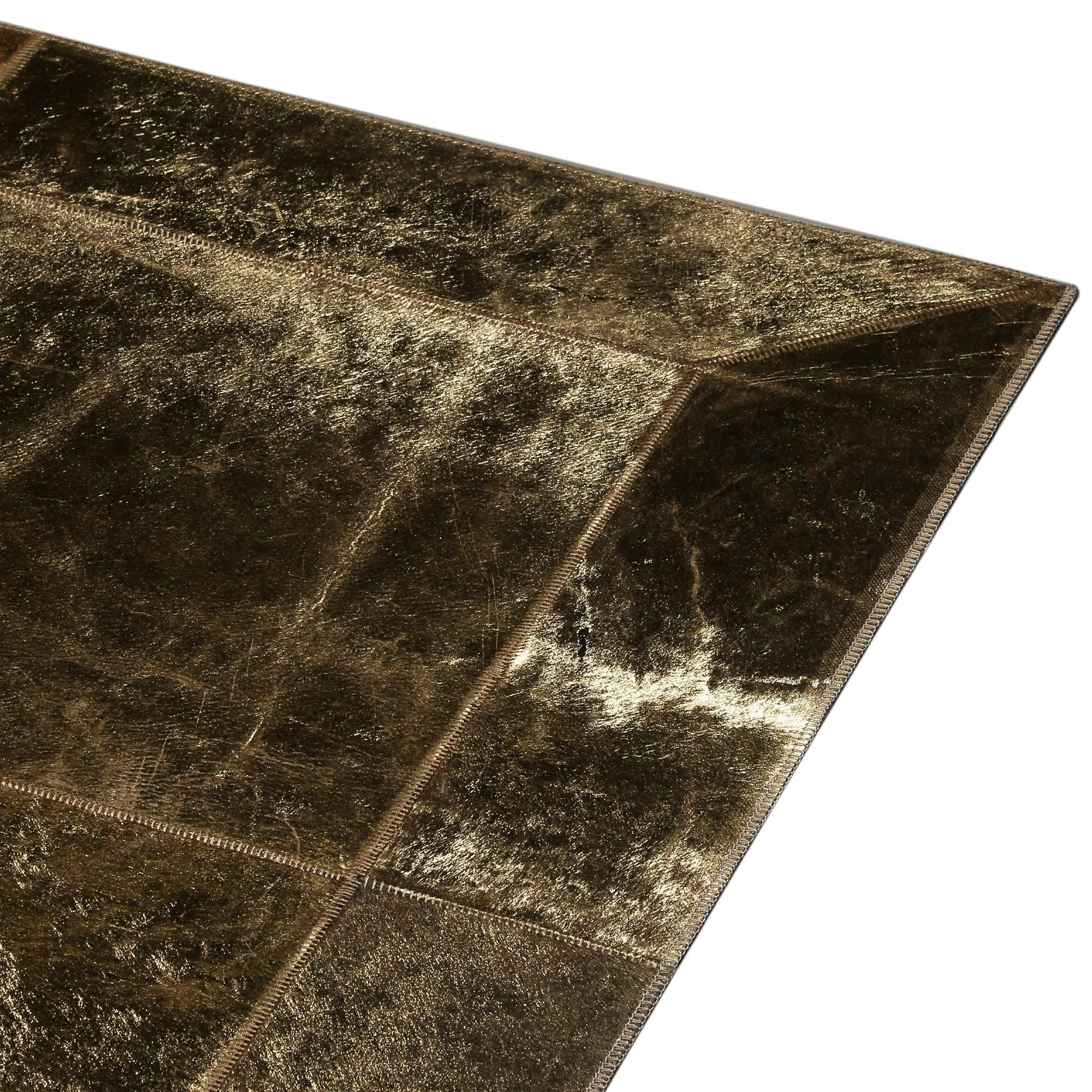 Altın Kahverengi El Dokuma Dana Derisi Halı – Hakiki Deri Patchwork Lüks Salon Halısı