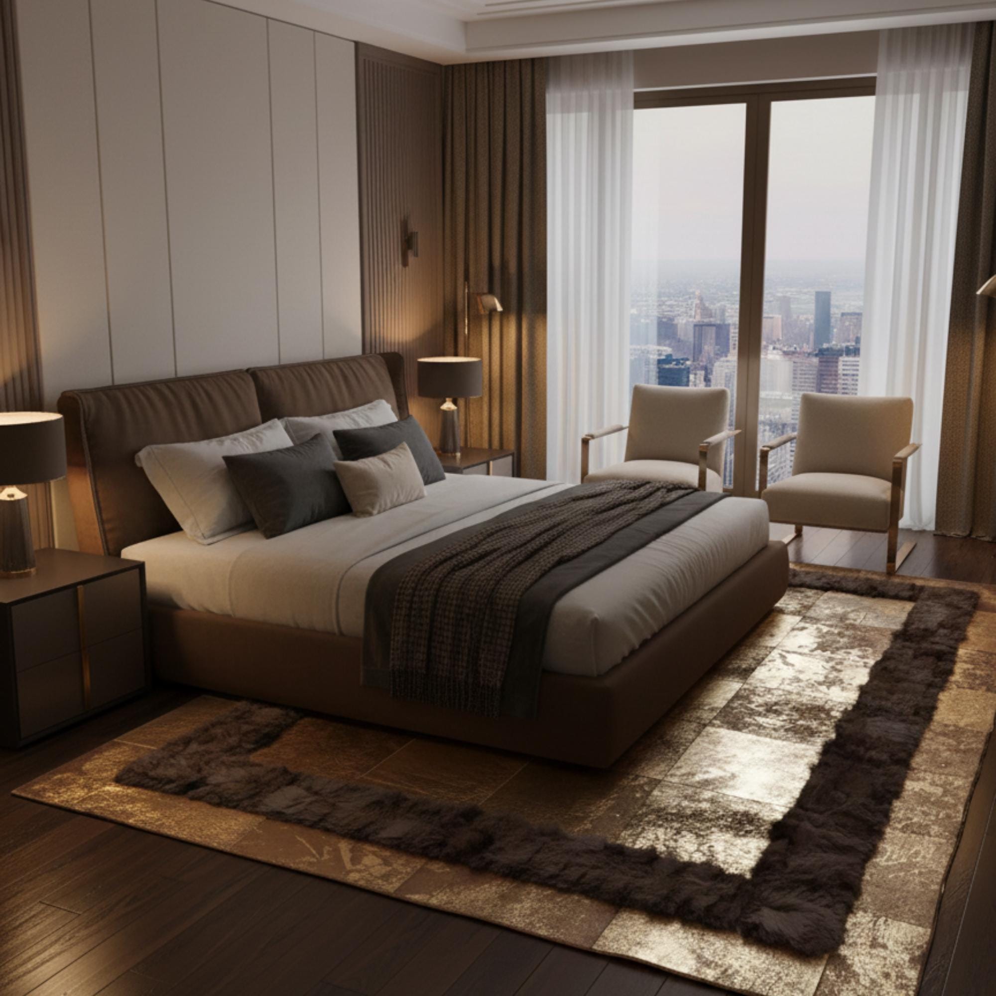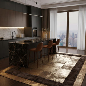 Patchwork tekniğiyle bir araya getirilen deri parçalar, yüzeyde simetrik ve net bir kompozisyon oluşturur. Dayanıklı dana derisi yapısı uzun süreli kullanım sağlar ve formunu korur. Doğal deri dokusu sayesinde her halı kendine özgü ton ve doku farklılıkları taşır.