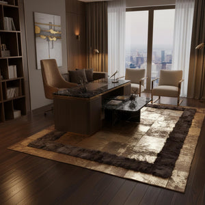 Koyu Çerçeveli Bej ve Kahverengi Tonlu Dana Derisi Patchwork Halı