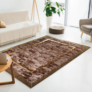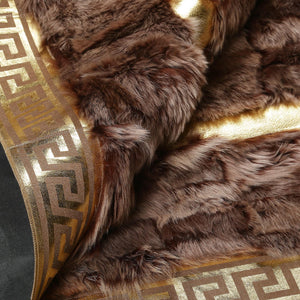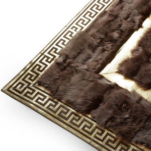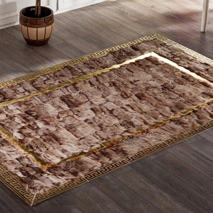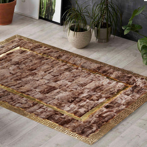 Açık Kahverengi Toskana Derisi Halı – El Yapımı Patchwork, Altın Bordürlü Hakiki Deri Dekoratif Salon Halısı