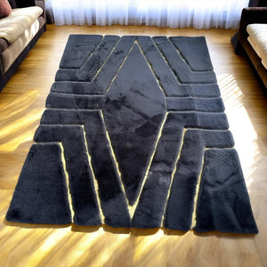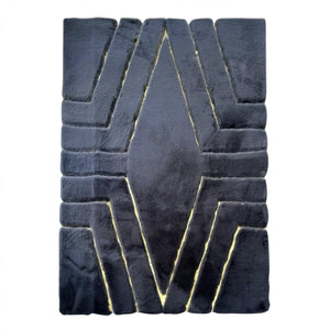 Siyah Kabartmalı Desenli Yumuşak Peluş Halı