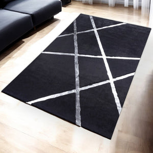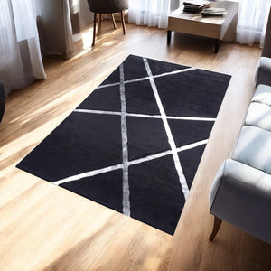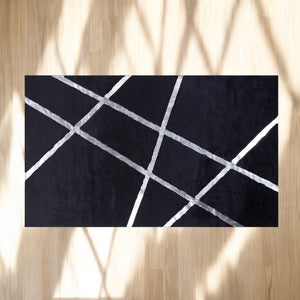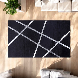 Siyah Üzerine Gümüş Desenli Yumuşak Peluş Halı
