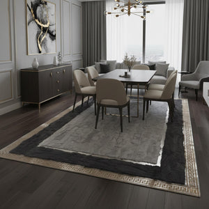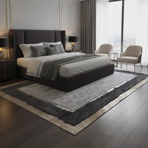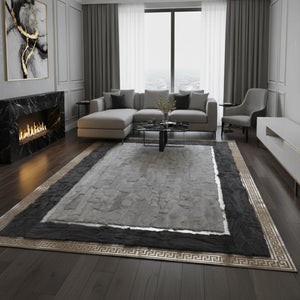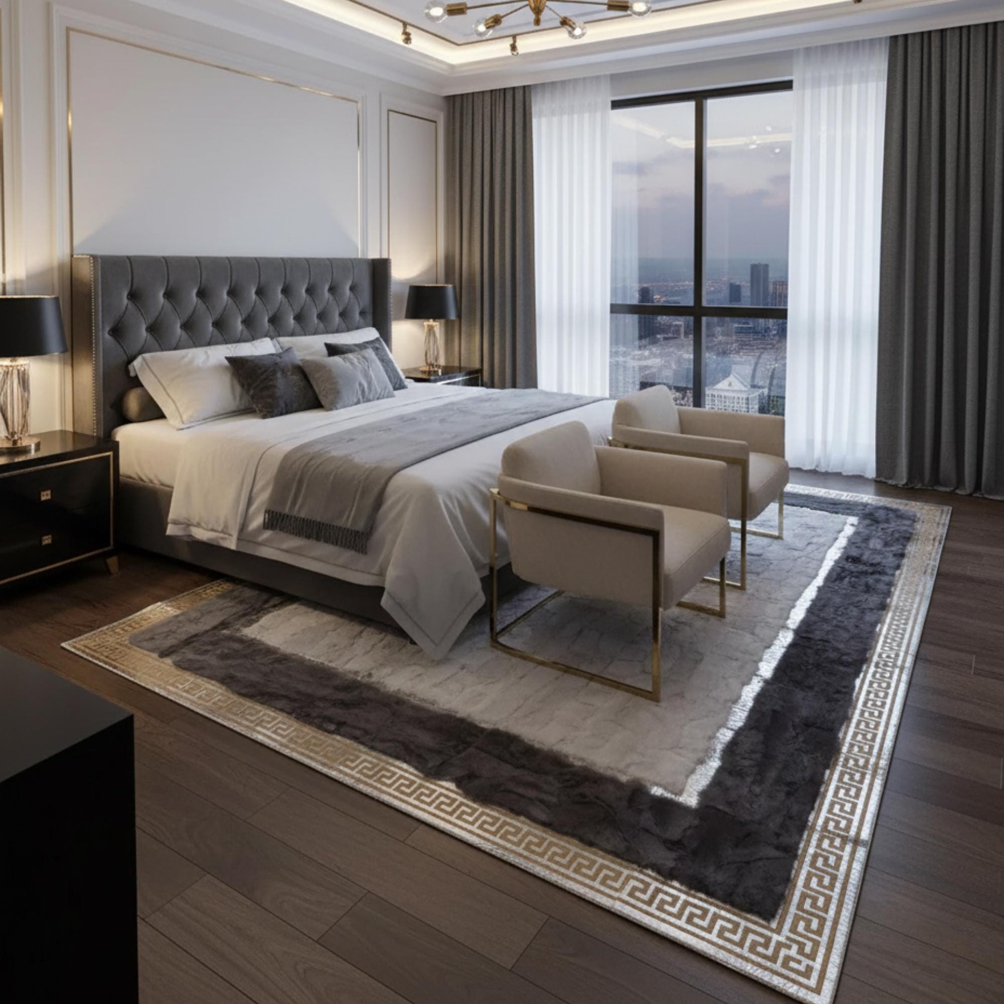 Koyu Gri Çerçeveli Açık Gri Rex Tavşan Kürkü Salon Halısı – Modern ve Premium Tasarım