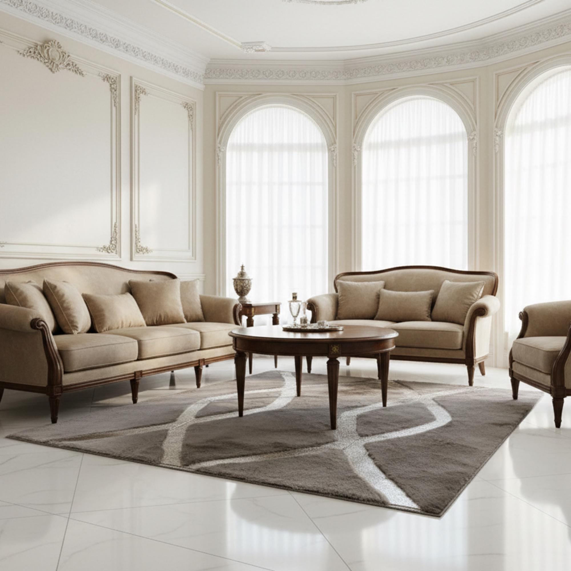 Yüksek yoğunluklu peluş yüzeyi sayesinde yumuşak ve konforlu bir kullanım sunan bu halı, dolgun dokusuyla yüzeyde homojen bir his sağlar. Günlük kullanıma uygun yapısı formunu korur ve uzun süreli kullanımda estetik görünümünü muhafaza eder.