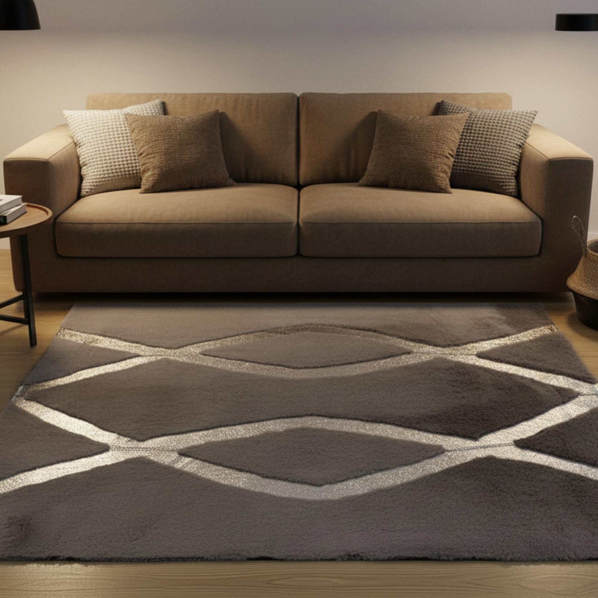 Gri Zeminli Silver Çizgi Desenli Peluş Halı – Yumuşak Dokulu, Modern ve Dekoratif Halı