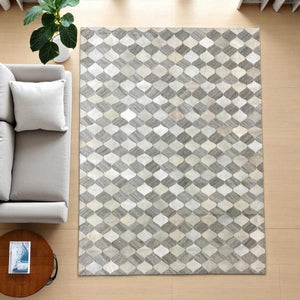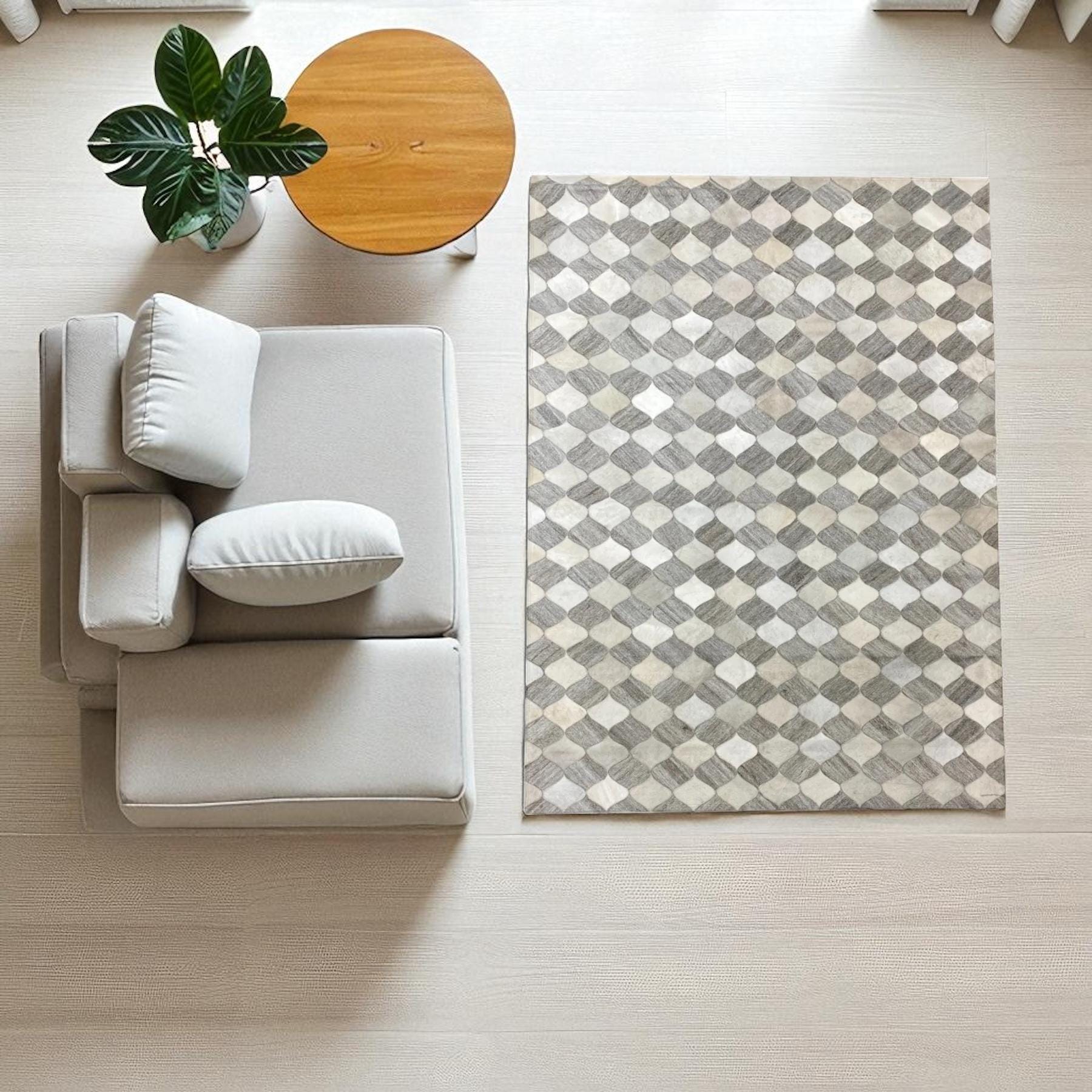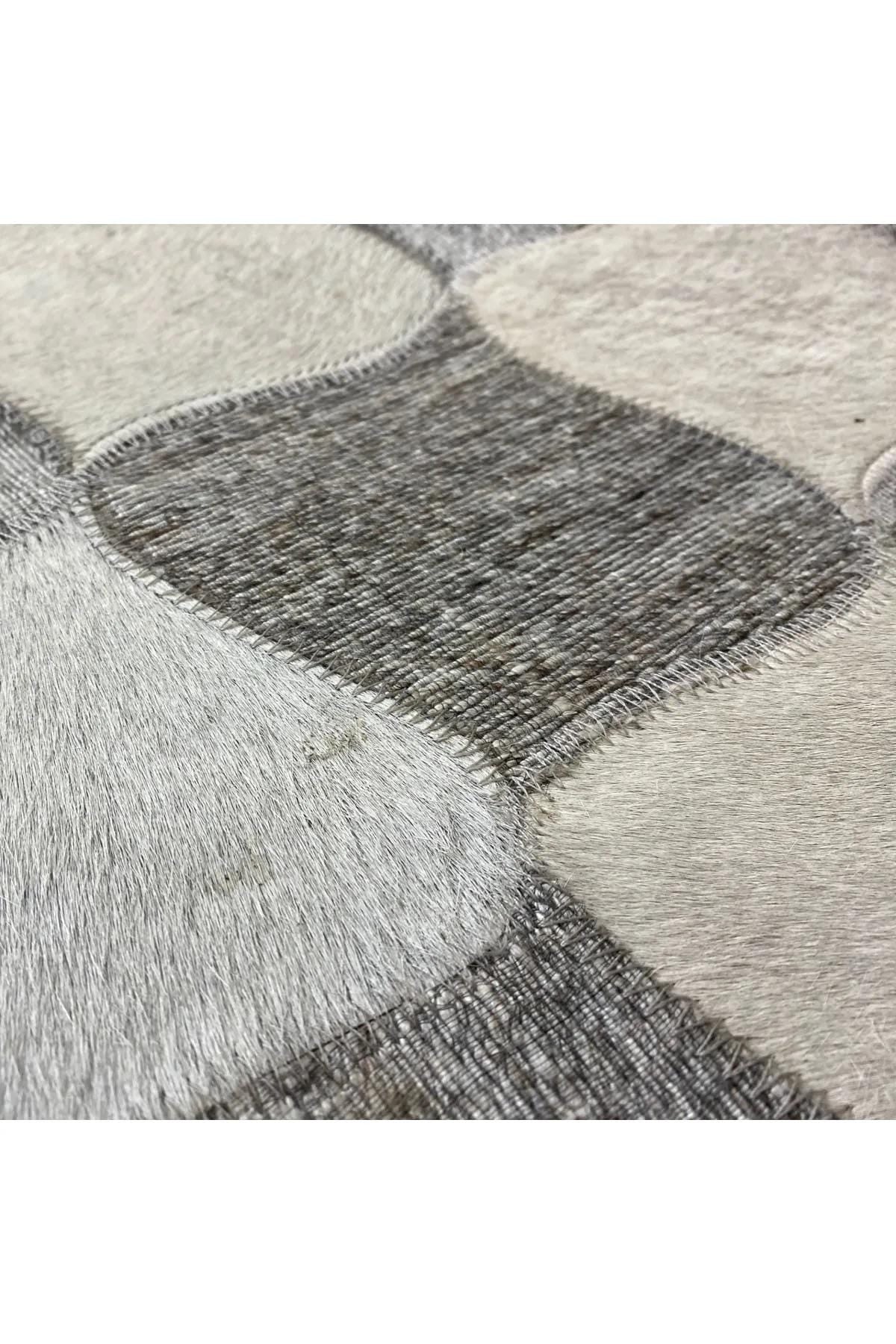 Gri Beyaz El Yapımı Halı – Doğal Dana Derisi Şık ve Modern Salon Halısı
