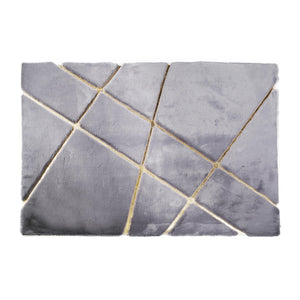 Gri Altın Çizgili Peluş Halı – Modern Dikdörtgen Yumuşak Halı, El Yapımı Lüks Dekoratif Salon ve Oturma Odası Halısı
