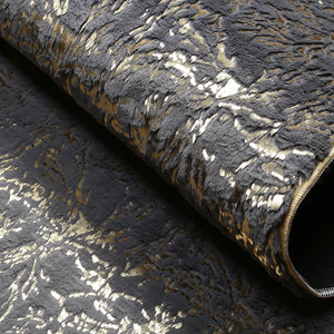 Gri Zeminli Altın Mermer Desenli Yumuşak Dokulu Peluş Lüks Salon Halısı