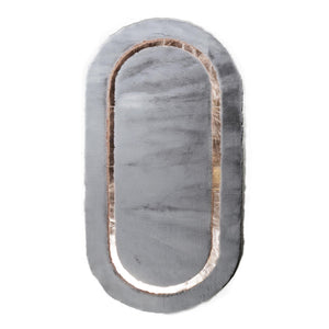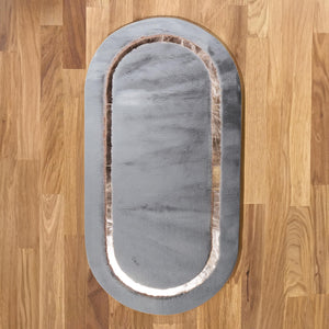 Bu gri oval peluş halı, zarif çerçeve detaylarıyla modern bir görünüm sunar. Yumuşak dokusu ve dayanıklı yapısıyla hem şıklık hem de konfor sağlar.