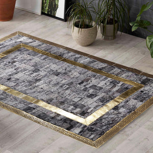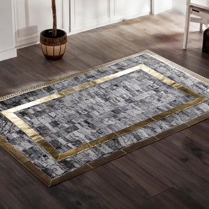 Gri ve Altın Renkli Çerçeveli Gerçek Toskana Derisi Lüks Salon Halısı