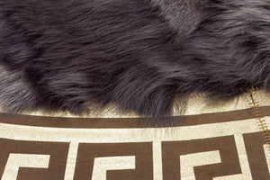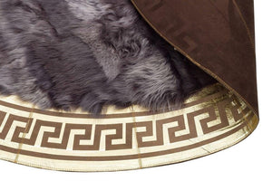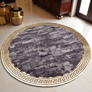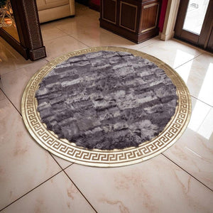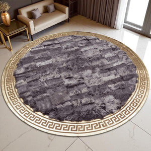Gri Altın Desenli Yuvarlak Toskana Derisi Halı – El Yapımı Doğal Deri Halı