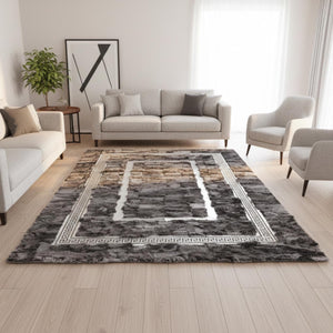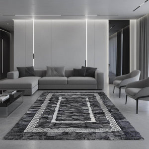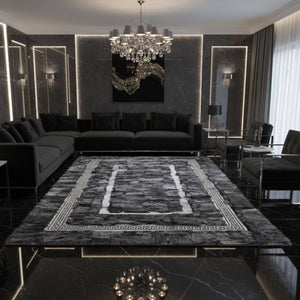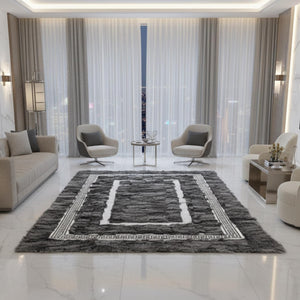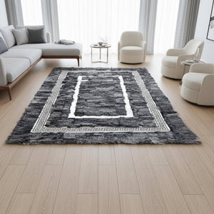Gri Toscana Kürk Halı Gri Bordorlü– Modern Çizgili ve Şık Salon Tasarımı